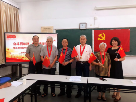 在接下来的党日活动中,林锦芯宣读离退休支部获得学校优秀共产党员名单,贾承纪等7个老党员永葆党员底色,发挥先锋模范作用,被评为学校优秀共产党员。原副校长程季平为他们颁奖。