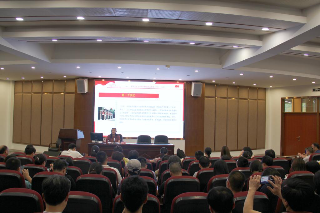 为贯彻落实习近平总书记在全国职业教育大会上的重要指示精神,扎实推进学校党史学习教育,6月30日下午,学校党委委员、副校长林旻在仓山校区学术报告厅作题《学党史悟思想书写职业教育新篇章》的党史学习教育专题党课。仓山校区办、教务处、科研处、后勤处、基建工作小组、资产管理工作小组、现代教育技术中心、图书馆、人文社科系、计算机系、化工系、机电系全体党员等部门全体党员听取了党课。