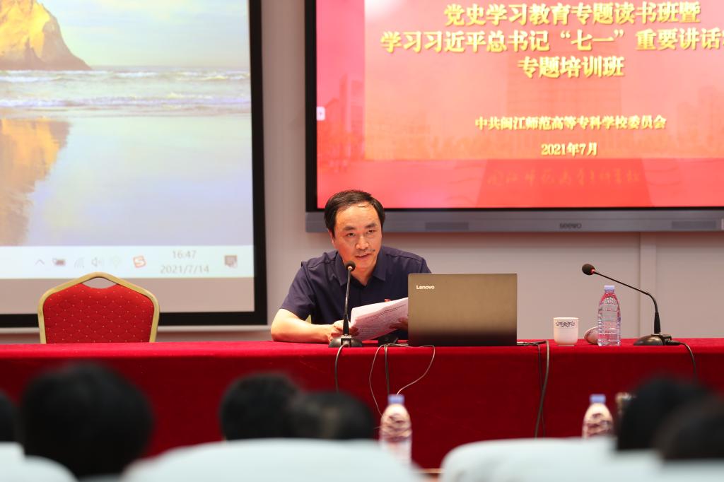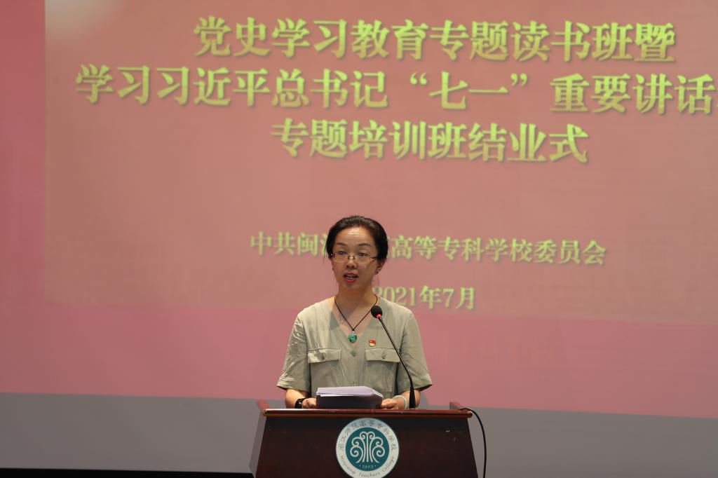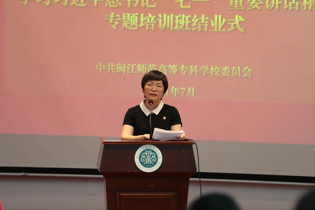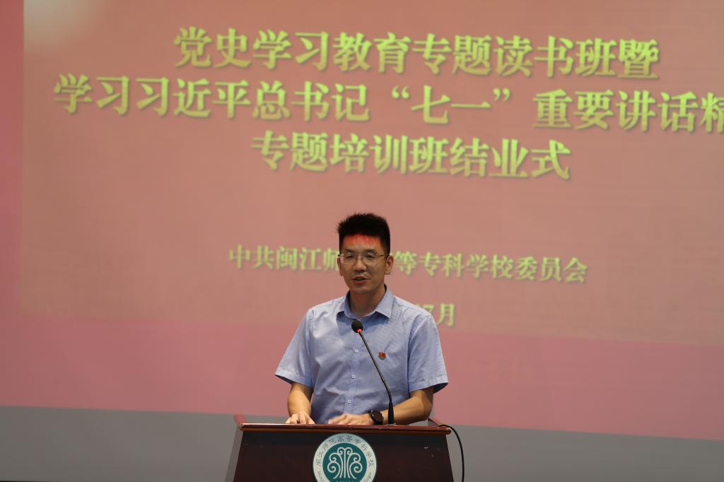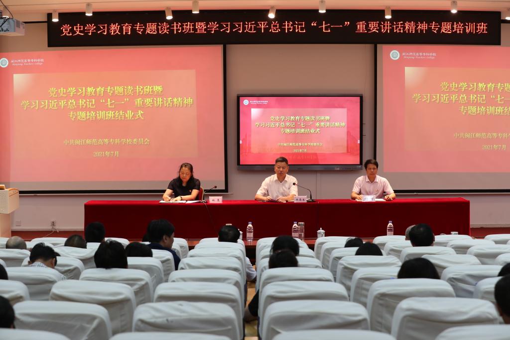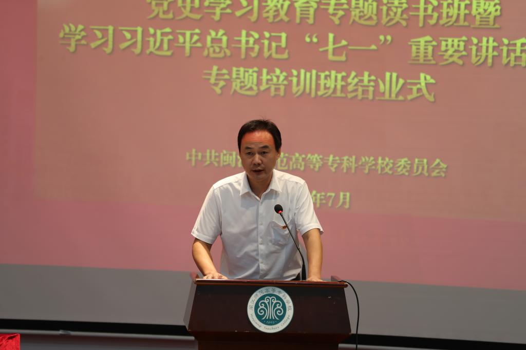 7月14日下午,大赢家体育app下载党史学习教育专题读书班暨学习习近平总书记“七一”重要讲话精神专题培训班结业式在旗山校区举行。校党委书记陈荣生作结业讲话,校长杨建义、副校长林旻,全体副科级及以上干部,党总支、直属党支部书记参加结业式,林旻主持结业式。