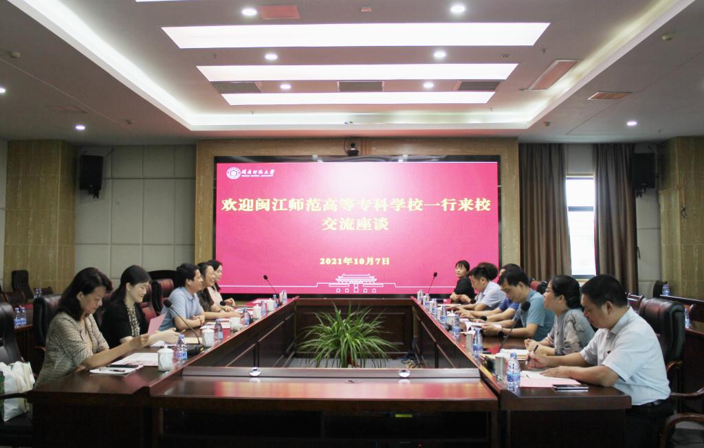 2021年10月7日,校长杨建义、副校长林旻率教务处主任葛思华、办公室副主任庄翠冷、艺术系主任徐青等相关人员前往闽南师范大学调研师范本科建设和专本贯通相关事宜。闽南师范大学校长李顺兴、校党委副书记钟发亮热情的接待了调研组一行。
