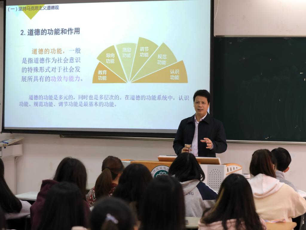 11月23日,杨建义校长为学生讲授《遵守道德规范 锤炼道德品格》章节内容。