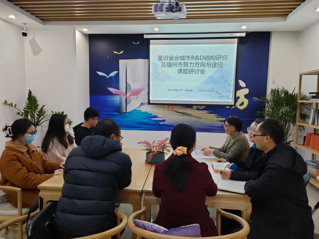 2021年12月29日上午,大赢家体育app下载科研处在旗山校区二楼图书馆举办了福州市科技局2021年创新战略研究项目《重点省会城市R&D结构研究及福州市努力方向与途径研究》课题研讨会。福建师范大学经济学院系张业圳副教授及其团队参加本次研讨活动,活动由科研处副处长郭晓莹主持。