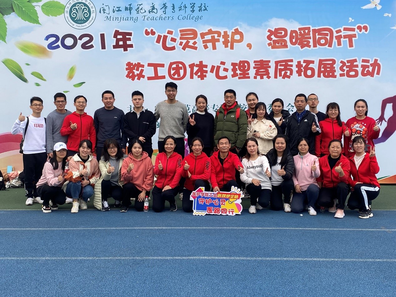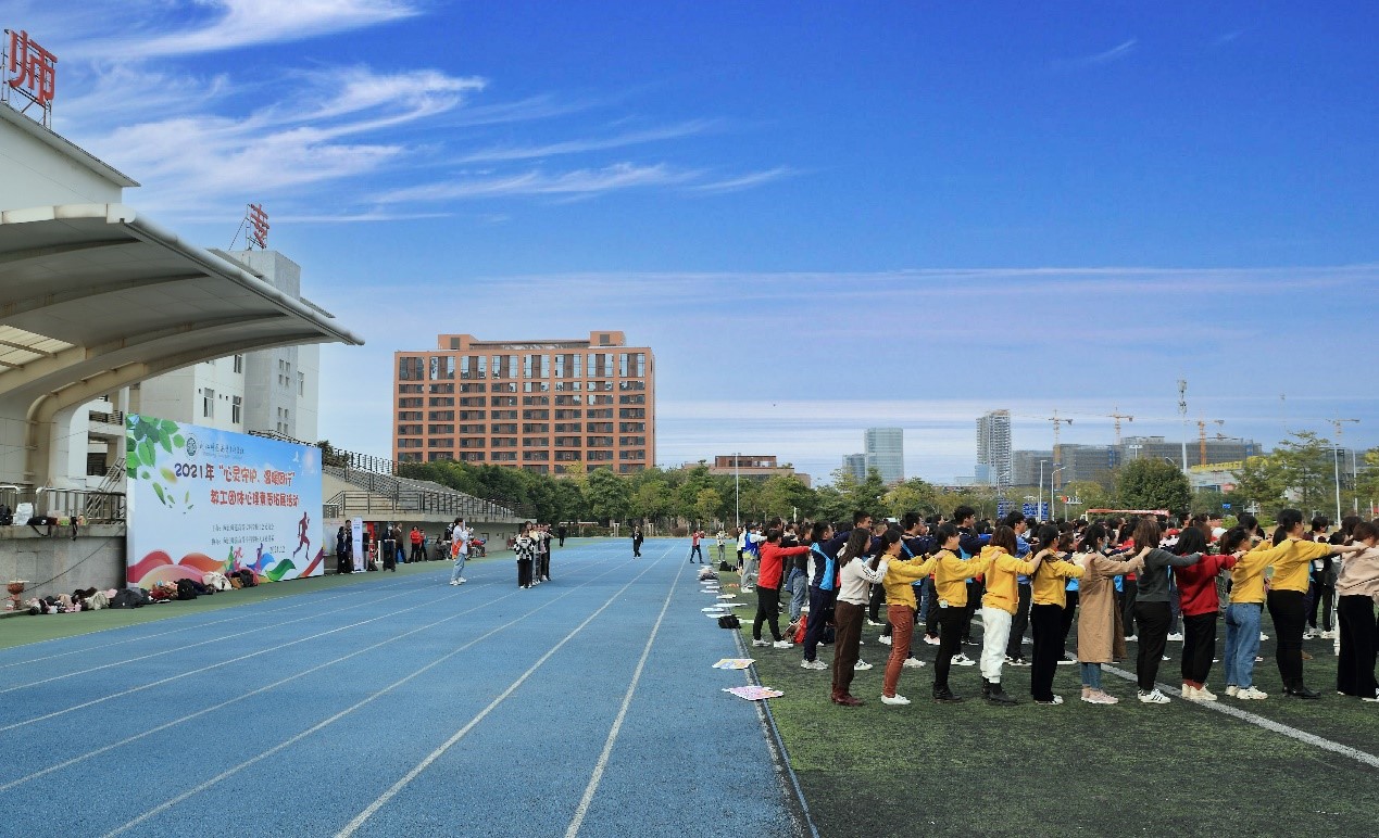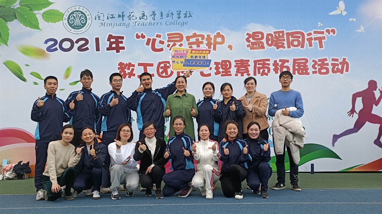 为推动落实福州市职工温暖工程2021年心灵守护服务工作,响应校党委号召,关心关注全校教职工身心健康,更好地满足教工们对美好生活的需要,增强教工团队凝聚力和向心力,12月8日下午,校工会在旗山校区操场开展2021年“心灵守护,温暖同行”教工团体心理素质拓展活动。校党委书记陈荣生,副校长、工会副主席林旻以及全校19个工会小组(含医护学院、附小、附幼二级工会)300多位教职工一起参加了此次活动。
