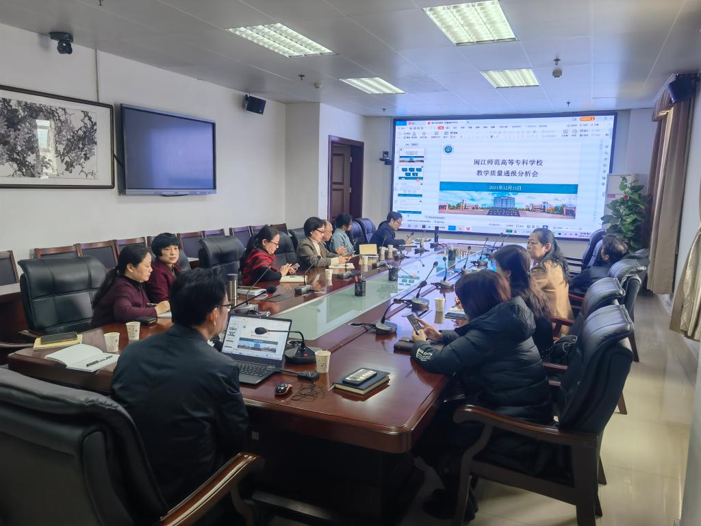 为全面总结2020—2021学年教学工作,进一步加强学校教育教学研究,不断提升教学质量,科研处教学质量评估中心于12月15日上午在九楼会议室召开教学质量通报分析会,副校长林旻、教务处处长葛思华、学生处处长张信容及各系部主任参加会议,会议由科研处处长陈强主持。