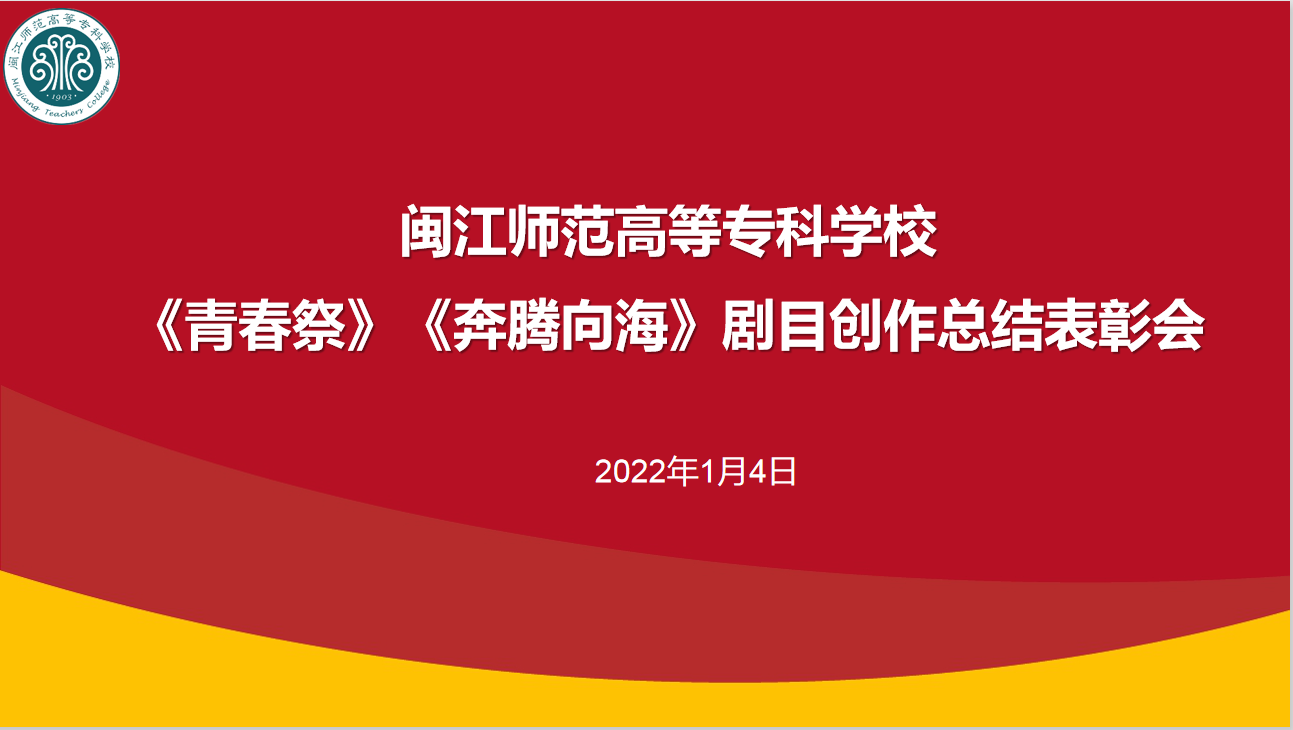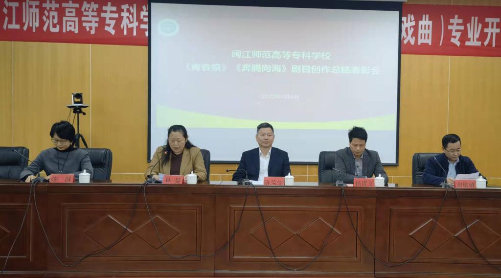 陈荣生对红色闽剧现代戏《青春祭》和情景歌舞剧《奔腾向海》在第八届福建艺术节精彩亮相并取得优异成绩给予高度赞扬,对艺术系师生在创排两大剧目过程中所展现出来的团结担当、敬业奉献及大局意识给予充分肯定。同时,他提出三点要求。一是继续着力专业深造,实现新提升。学校将一如既往地支持教师们的专业提升与发展,鼓励艺术创作百花齐放。二是继续敢于担当作为,贡献新力量。学校是福建省唯一一所培养闽剧表演艺术人才的职业院校,要充分发挥好得天独厚的天然优势,在全省范围内挑选好生源,培养优质非遗人才,为闽剧非遗文化事业传承贡献新力量。三是继续做好新年规划,创造新辉煌。2022年,是党的二十大召开之年,也是中国共产主义青年团成立100周年,要抓住良好契机,打磨提升剧目,力争在新平台上创造新辉煌!