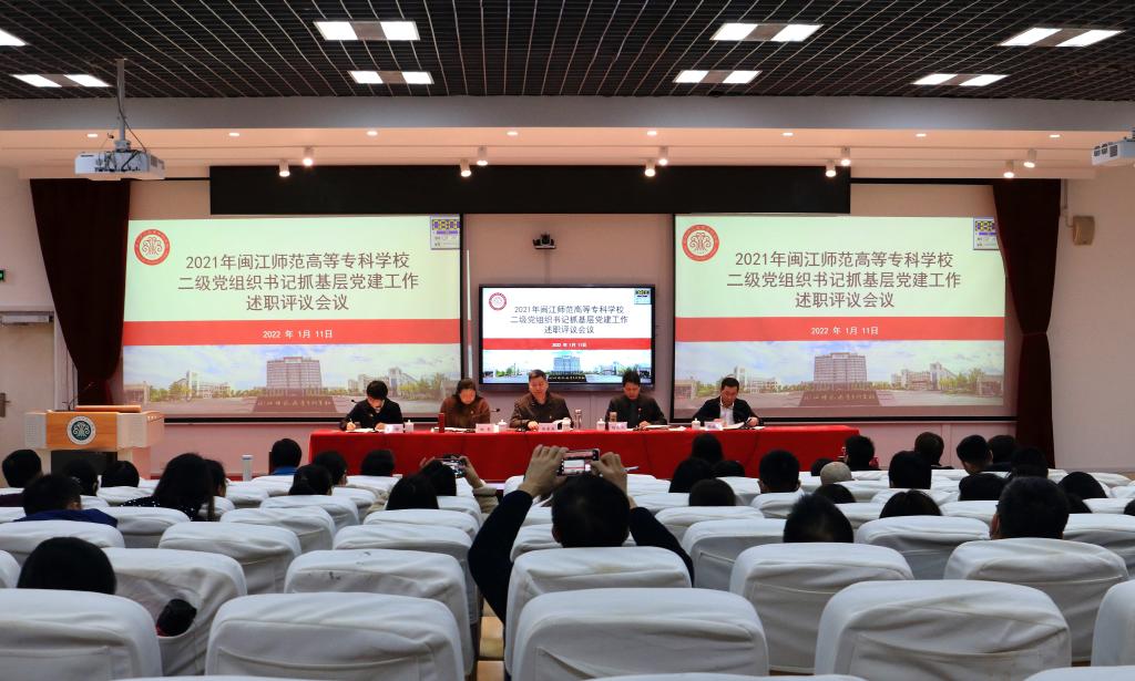 1月11日,大赢家体育app下载在旗山校区2018教室召开2021年度二级党组织抓基层党建工作述职评议会议。全体校领导,组织部、宣传统战部、纪检监察审计室负责人,二级党组织委员,部分党员代表等参加会议。会议由校党委副书记、校长杨建义主持。