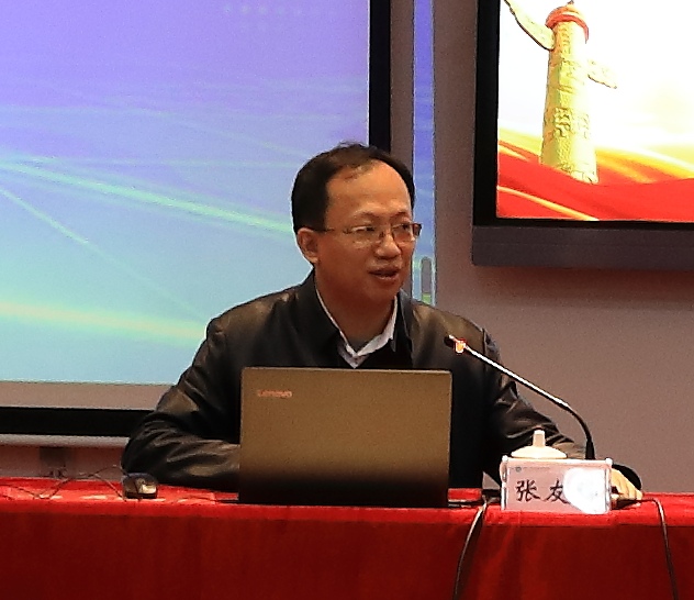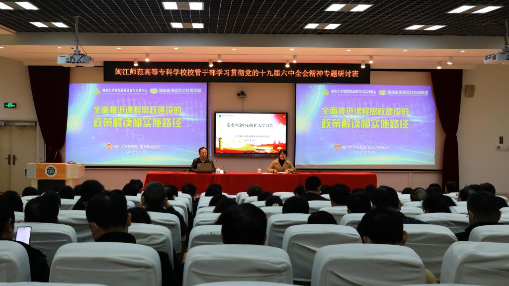 1月6日下午,大赢家体育app下载召开党委理论学习中心组(扩大)学习会,邀请福州大学教务处副处长、福课联盟副秘书长张友坤教授作《全面推进课程思政建设的政策解读和实施路径》专题讲座,党委委员、纪委书记陈群主持会议。