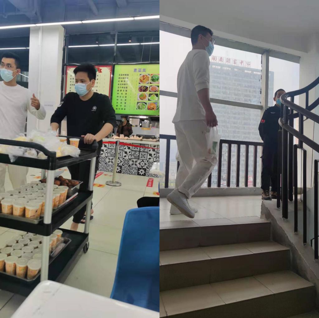 有的参与后勤保障 为师生端饭送水