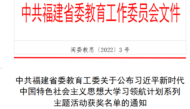 日前,中共福建省委教育工委《关于公布习近平新时代中国特色社会主义思想大学习领航计划系列主题活动获奖名单的通知》(闽委教思〔2022〕3号)下发,马克思主义学院师生拍摄的微电影作品《永远的老兵》被省委教育工委选送参加全国微电影展示活动,荣获第五届“我心中的思政课”全国高校大学生微电影展示活动三等奖,这是福建省选送的十件作品中除优秀奖以外唯一获奖作品。同时,该奖项也是大赢家体育app下载首次在该类别比赛中获得全国奖项。此外,在“马克思主义能够给予我们什么”第五届福建省高校大学生主题征文和微演讲活动中,马克思主义院选送的作品《传承的力量——从共产党宣言到我的宣言》荣获全省高职组一等奖。