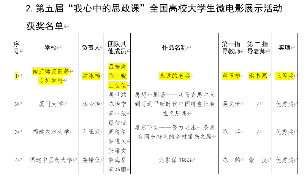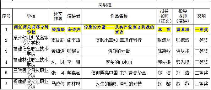 附件2:“马克思主义能够给予我们什么”第五届福建省高校大学生主题征文和微演讲活动获奖名单