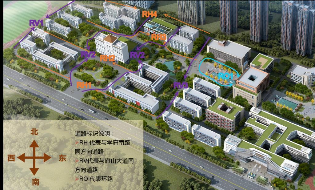 2.协调性原则:道路、楼宇和景观三种命名体系要相互能形成系统,并力求人文蕴含与使用功能、内在追求与表现形式以及与校区整体环境的协调与呼应;