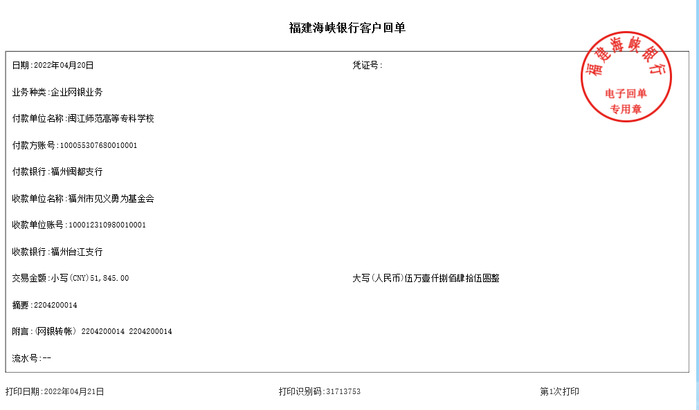 4月,闽江师专工会积极响应《向福州市见义勇为勇士捐款献爱心的倡议书》(榕义委〔2022〕3号)号召,向全体在职和离退休教职员工提出倡议,动员广大教职员工慷慨解囊,积极向见义勇为勇士捐款献爱心,为创造平安和谐福州做出自己的一份贡献。