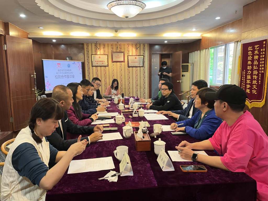 在座谈会上,杨建义指出,长期以来学校与戏曲院团就戏曲艺术人才培养开展了深入了的合作,携手在闽剧艺术薪火相传道路上笃定前行。他希望今后能够与戏曲院团进一步拓宽合作领域、搭建互动平台,推进院校合作向更深层次、更高水平迈进,共同培育更多符合新时代要求的戏曲艺术人才。福建京剧院及福建省实验闽剧院负责人均表示,希望能够与学校开展多元深度合作,一起培养更多符合戏曲行业所需要的戏曲后备人才,共同为非遗戏曲艺术高质量发展贡献力量。杨建义还就人才培养、资源共享及教学实践基地建设等事项与福建京剧院、福建省实验闽剧院负责人进行深入探讨并达成初步共识。