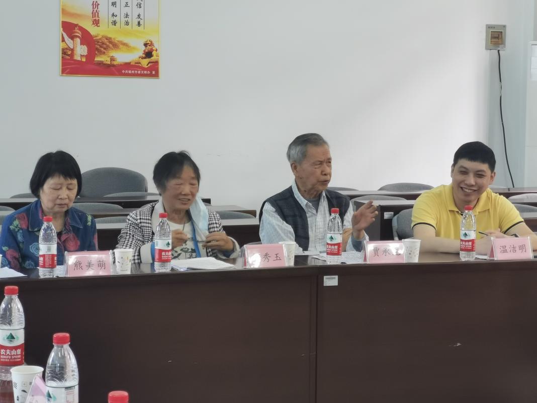 离退休第一党支部优秀党员代表贾承纪介绍他积极响应市委老干部局“红色领航 银发助邻”号召,在家门口主动亮明身份,挂牌台江区洋中街道“党员之家”,积极参与社区治理,充分发挥“银发增辉”党员先锋模范作用,实现退休不退热。