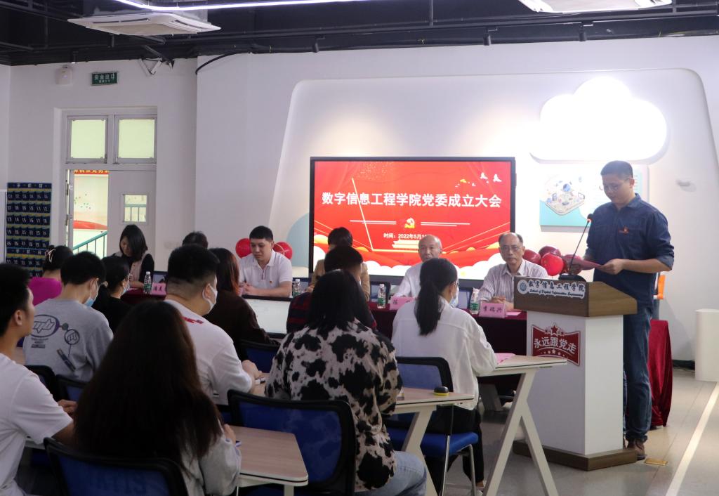 温洁明同志宣读数字信息工程学院党委成立文件
