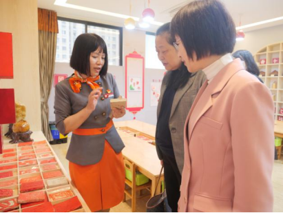 在晋安区教师进修学校附属幼儿园,园长林云芝对林旻一行表示热烈的欢迎,带领一行人参观了幼儿园的园所环境并介绍了该幼儿园全国首创的“幼儿篆刻课程(童印)”。