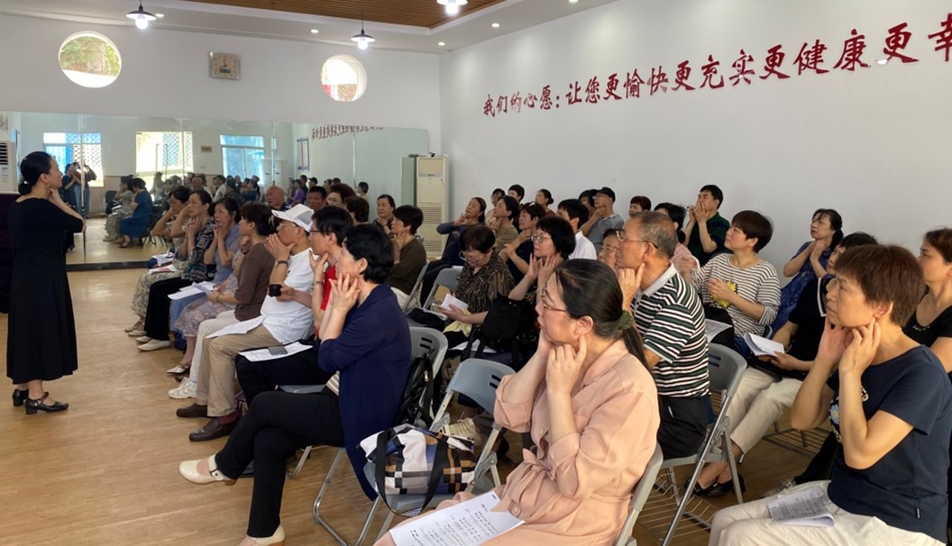 周一的上午阳光正好,学员们迎着晨光,满面笑容地走进班级,相互慰问,气氛十分和谐。声乐课上徐丽红老师带领学员们练习开嗓,向学员们讲授演唱发声技巧,学员们丝毫不受天气炎热的影响,学习热情十分高涨。学员们手持乐谱,伴随着悠扬的琴声,经过几次练习,不一会儿,教室里便传来优美的歌声,唱出老年人“人老心不老”的精神。