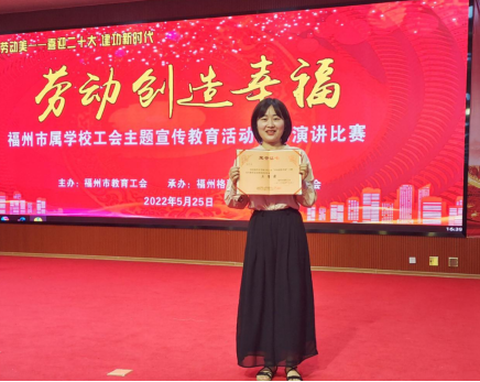 近日,由福州市教育工会主办的市直属学校工会“劳动创造幸福”主题宣传教育活动教师演讲比赛决赛在福州格致中学鼓山校区举行,共有58所学校代表选手参与角逐,大赢家体育app下载代表选手医护学院青年教师徐方丽获得演讲比赛三等奖。