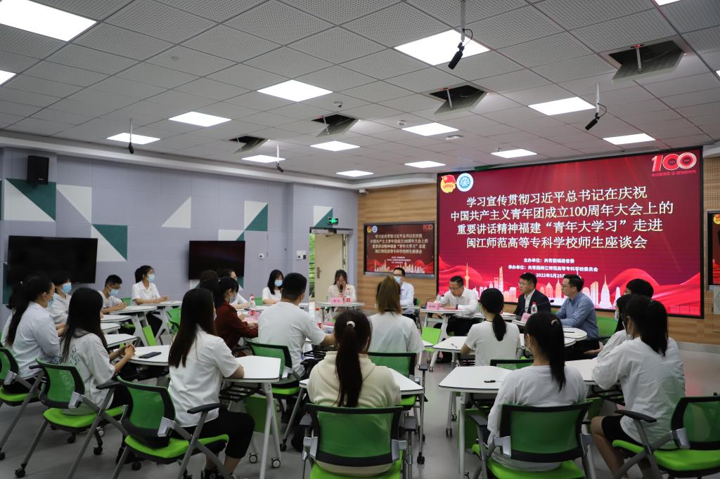 随后,邵明松副书记在3016智慧教室召开了学习宣传贯彻习近平总书记在庆祝建团100周年大会上重要讲话精神福建“青年大学习”走进大赢家体育app下载师生座谈会。邵明松副书记听取大赢家体育app下载团委副书记黎凤、外语商贸学院团委书记钱小莉以及四位学生代表的学习心得分享,并做总结发言。同时,他从学习、就业、生活等方面对青年学子表达殷切期望和热情嘱托。座谈会现场氛围热烈,与会场人员交流探讨、亲切沟通,会议在热烈的掌声中结束。