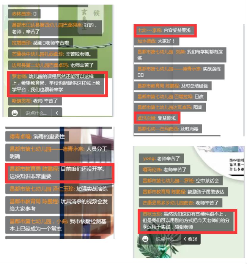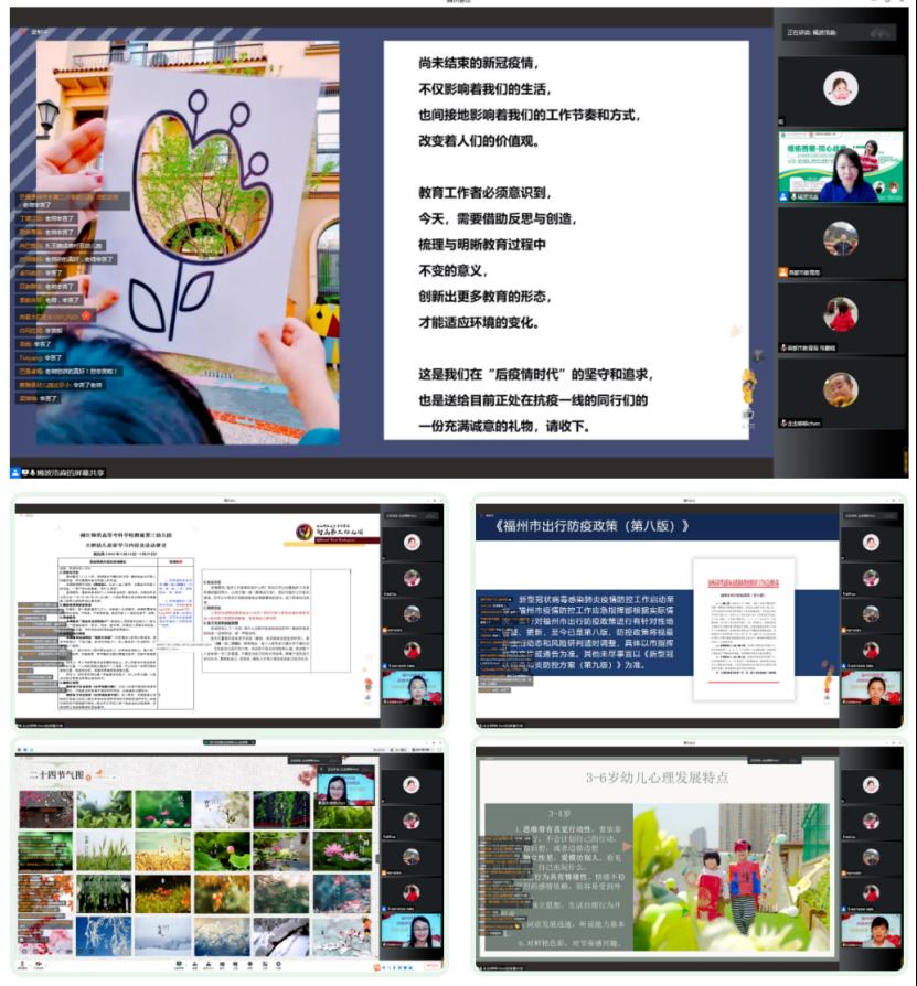 福州幼教集团五位园长对疫情背景下幼儿教育的实践经验进行复盘总结,对疫情下幼儿园线下教学及线上居家指导工作的热点、难点进行深入剖析,从园本教研、课程发展、后勤管理、家园共育等多方面研讨和分享“疫情背景下幼儿园教育的真需求”。 线上专题讲座受到了西藏幼教同仁的广泛好评,参会老师普遍表示获益匪浅,也对全新的幼教理念表示浓厚的兴趣,希望后续能与福州幼教集团深入交流与学习。