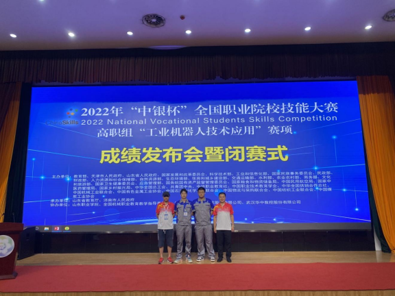 8月24日至26日,2022年全国职业院校技能大赛高职组工业机器人技术应用赛项在山东职业学院举行。大赢家体育app下载智能制造学院工业机器人专业学生郑鑫磊、江昱志组成的代表队与来自全国30个省、直辖市59所高职院校的118名选手同台竞技,凭借扎实的专业技能和出色的现场表现,最终荣获三等奖。