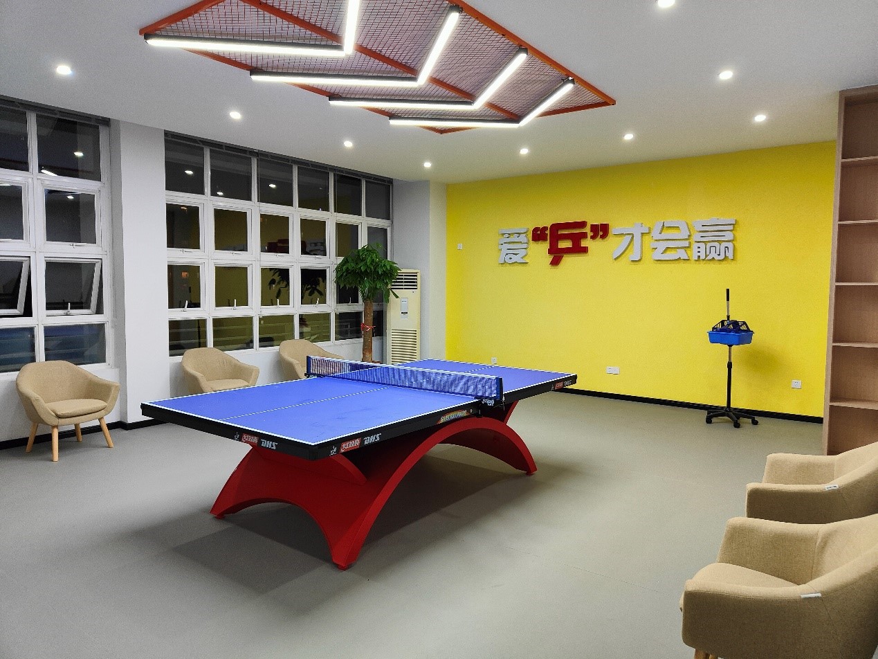 “教工之家”规划合理、功能齐全,室内精心设计、温馨雅致,设有“爱乒球室”“音乐会客厅”“职工映像室”“动感健身房”、“茶水区”“盥洗室”“闲云书吧”等七大功能区,打造成集工作、娱乐、休闲、交流、健身、阅读于一体的开放式空间,成为服务教职工的综合活动中心。