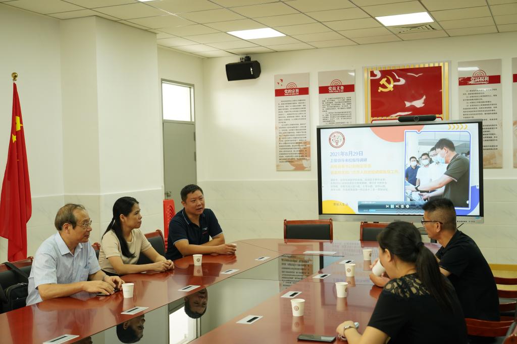 ▲(闽江师专各院所领导与附属学校领导在会议室交流)