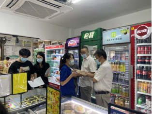 在校园内超市,检查组对食品经营许可证、营业执照、包装食品保质期、价格等方面进行检查,对临期食品处理、食品及杂物摆放等方面提出严格要求,对检查中发现的问题及时要求超市限期整改。