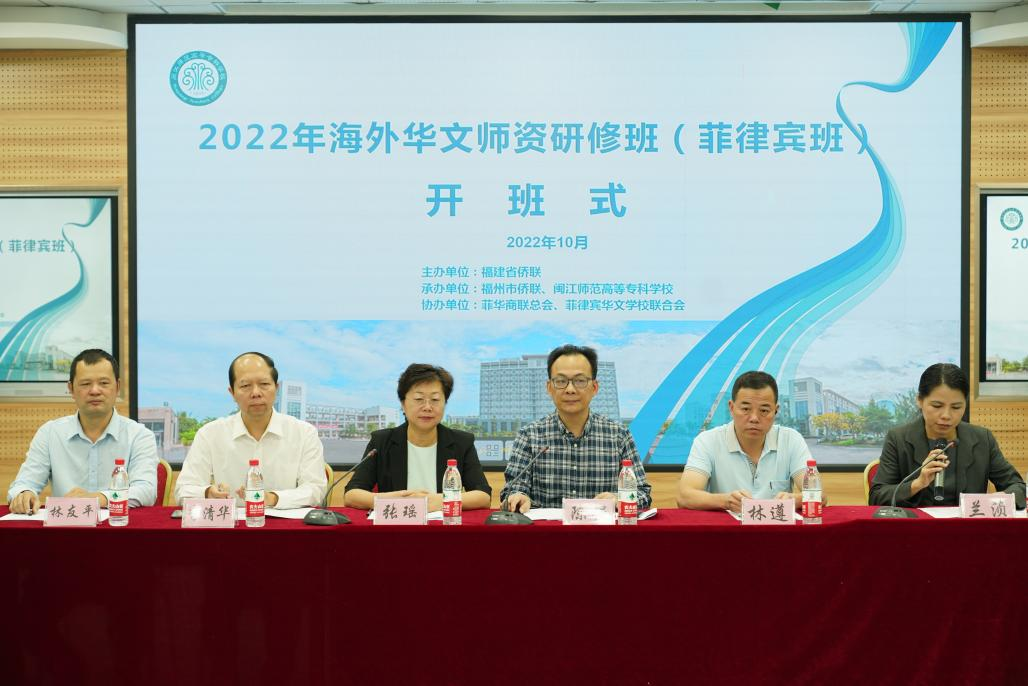 10月15日上午,福建省侨联副主席张瑶、福州市侨联副主席李清华、闽江师专副校长陈强、菲华商联总会副理事长施梓云、菲律宾华文学校联合会常务理事林文诚等出席开班仪式。