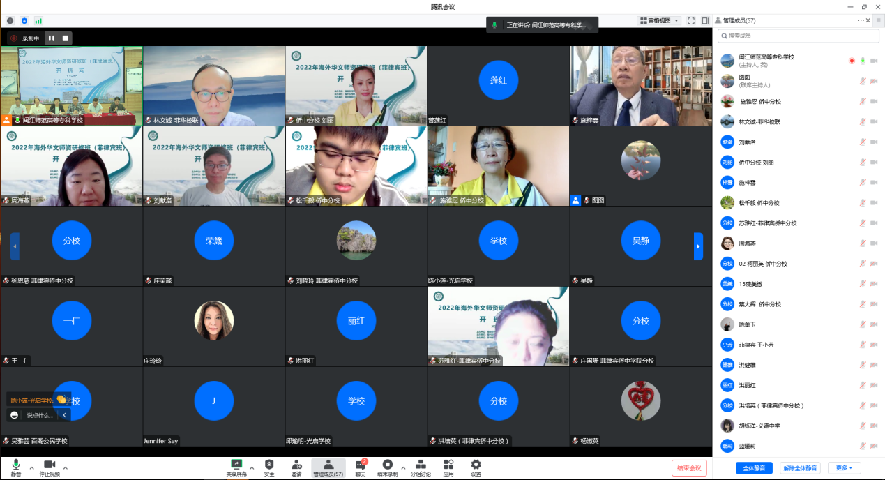 10月15日,由福建省侨联主办,福州市侨联、大赢家体育app下载承办,菲华商联总会和菲律宾华文学校联合会协办的2022年海外华文师资研修班(菲律宾班)通过网络平台顺利开班。来自菲律宾的70名华文教师学员将参加自10月15日至11月20日的华文师资研修项目。