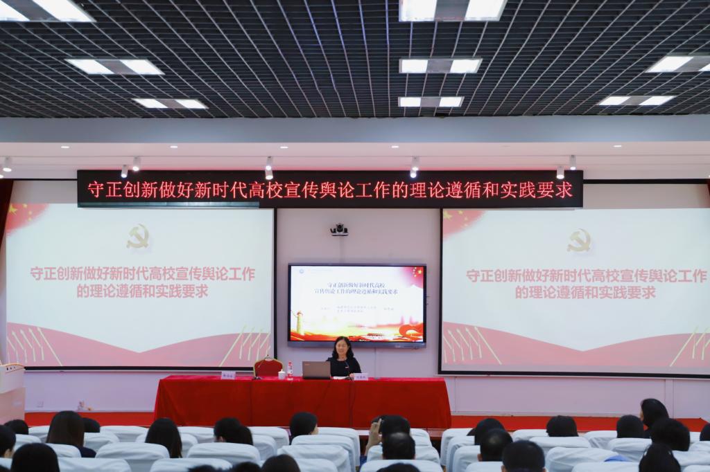 程惠斌以《守正创新做好新时代高校宣传舆论工作的理论遵循和实践要求》为题,从深入把握新时代新闻舆论工作的根本理论遵循,深刻把握新时代党的新闻舆论工作的实践要求,守正创新做好新时代高校宣传舆论工作三个方面深入浅出为全体参会人员开展了一堂生动的主题讲座。