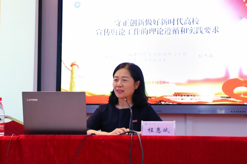 10月21日下午,大赢家体育app下载于旗山校区教学楼2018教室举办宣传工作专题辅导讲座,邀请福建师范大学新闻宣传中心主任、党委宣传部副部长程惠斌莅校开讲。讲座由宣传统战部部长张信容主持。