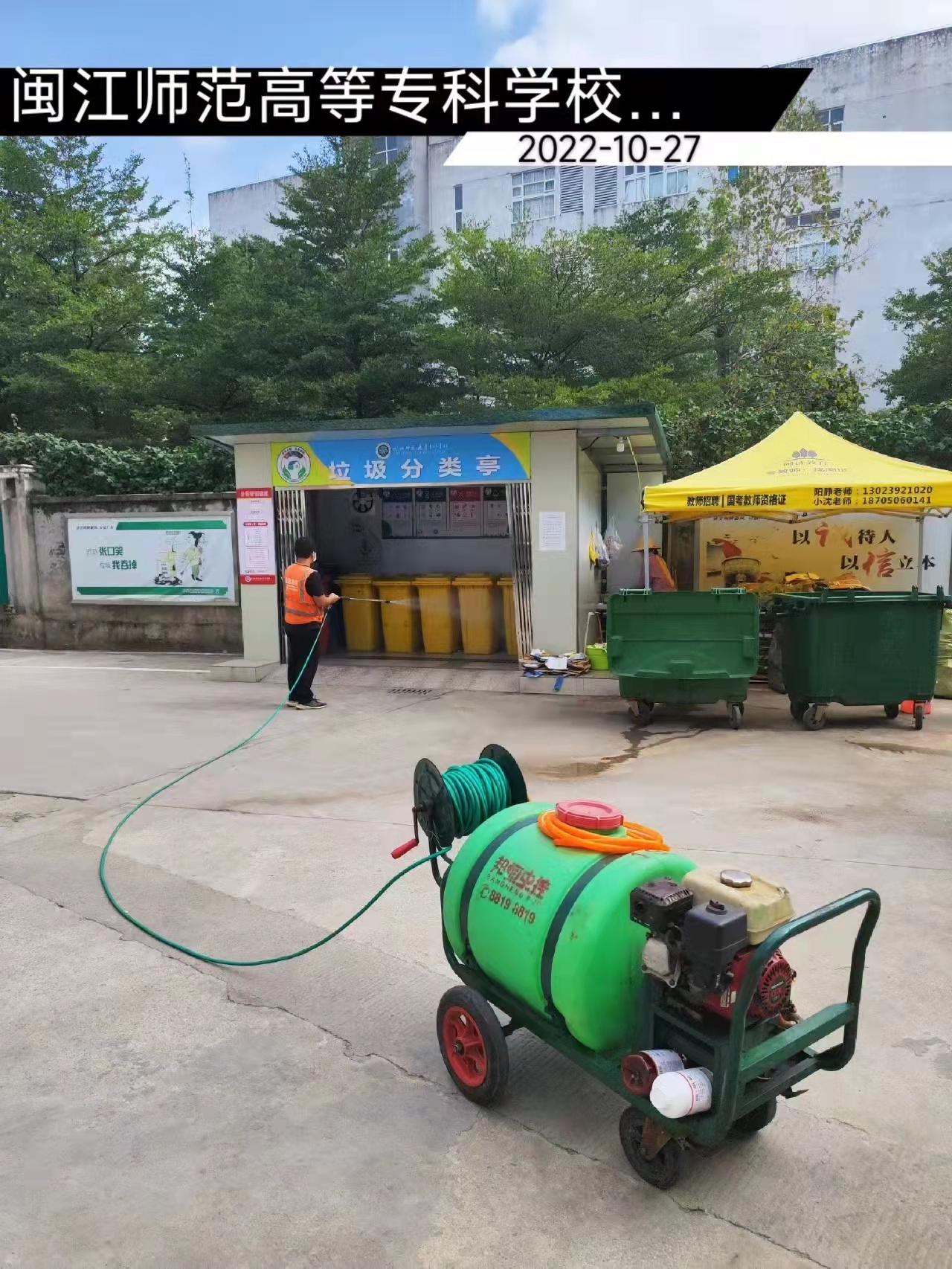 在在这鸟语花香的校园里,后勤人和同学们在一起,加油鼓劲,信心满怀,共同奏响打赢疫情防控歼灭战的胜利进行曲。