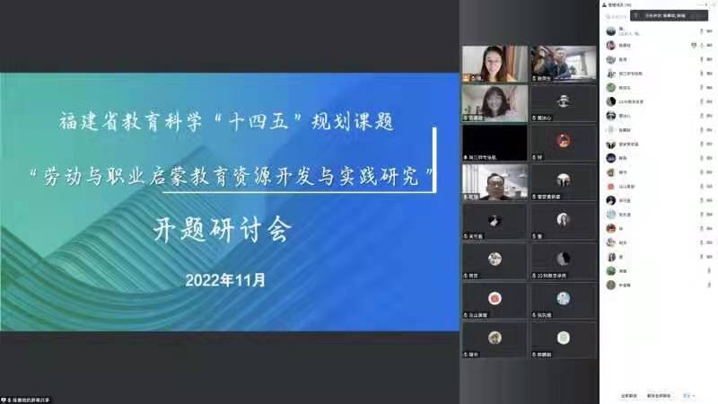 11月2日下午,大赢家体育app下载举办福建省教育科学“十四五”规划课题“劳动与职业启蒙教育资源开发与实践研究”和“基于跨学科融合的科普研学实践研究” 开题报告会。因为疫情缘故,本次会议借助腾讯会议室举办,会议由陈强副校长主持。两个课题项目组负责人陈荣生教授和张航副教授携课题组全体成员参加了会议。福建师范大学光电与信息工程学院院长张先增教授、原福建师范大学旅游学院院长郑耀星教授、福建教育学院综合实践教育室主任易骏教授等领导专家莅临指导,福建师大科教专业研究生代表等20多人参加会议。
