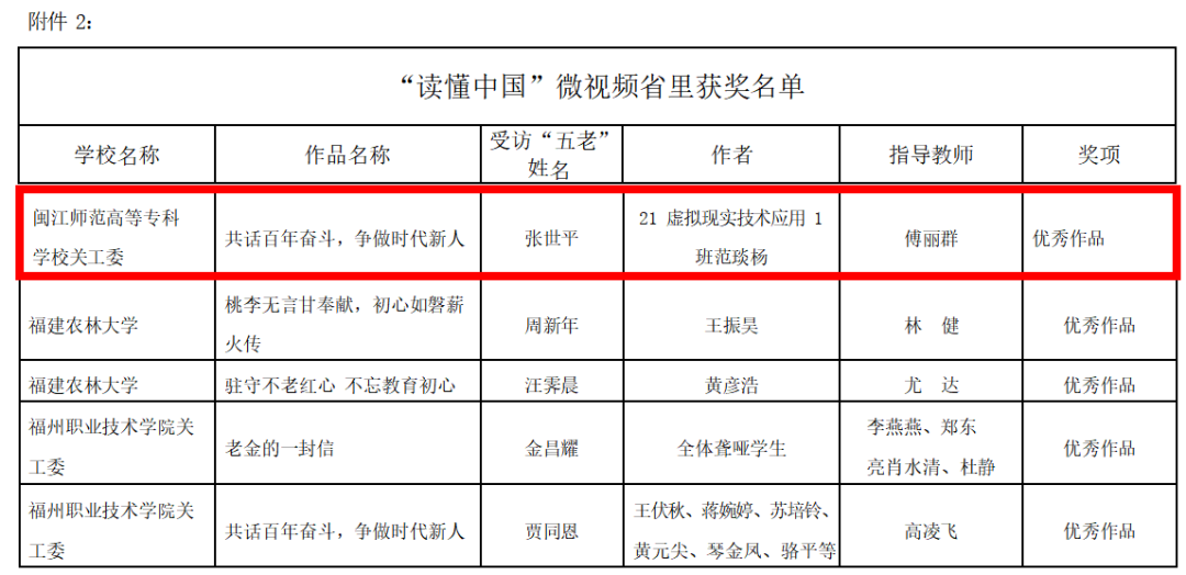 近日,福建省关工委印发《关于公布2022年“读懂中国——共话百年奋斗,争做时代新人“征文、微视频、舞台剧全国和我省评审结果的通报》(闽教关工委〔2022〕29号),大赢家体育app下载舞台剧《照亮青春》获得舞台剧最佳作品奖,征文《薪火传承,走向复兴》获征文优秀作品奖,微视频《共话百年奋斗,争做时代新人》获微视频优秀作品奖。