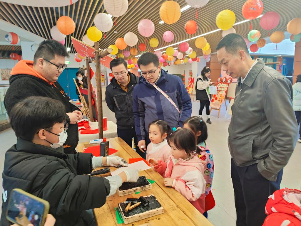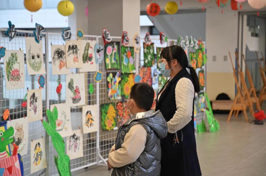 本次活动持续一天,包括“新年造趣”游园会、教学成果展示和2023年春季招生现场咨询会三个模块。在充满童真童趣的游园会中,“我好赞”“接福啦”“印年画”“步步高”“投壶乐”“迎窗花”“找画秘”等游园环节贯穿整个活动,在不同的娱乐摊位前,孩子们有序的排队玩耍、集赞和兑换礼品。同时,生物标本馆也吸引了不少的伙伴,它提供了一个丰富知识、开阔眼界的平台,使大家能够更加真实地接触、了解大自然。