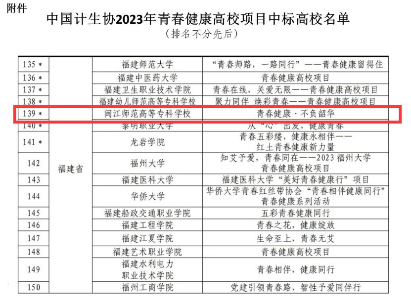 据悉,自申报启动以来,全国近500所高校提交项目申报书。经青春健康专家和青年代表的严格评审,综合往期项目执行情况和省市计生协推荐意见,最终确定361所高校入选2023年度青春健康高校项目,其中160所由列为A类项目高校。