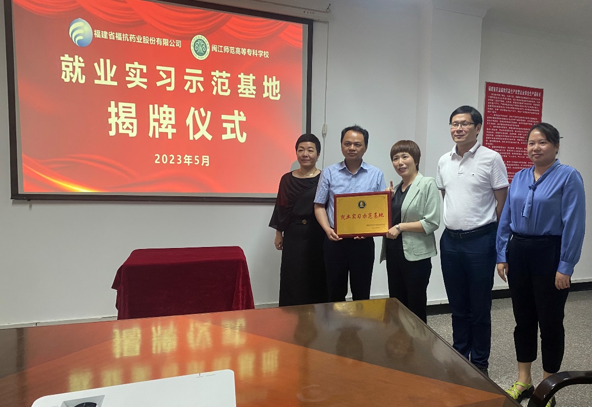 一行人还前往福建省福抗药业股份有限公司调研,并举行“就业实习示范基地”揭牌仪式。