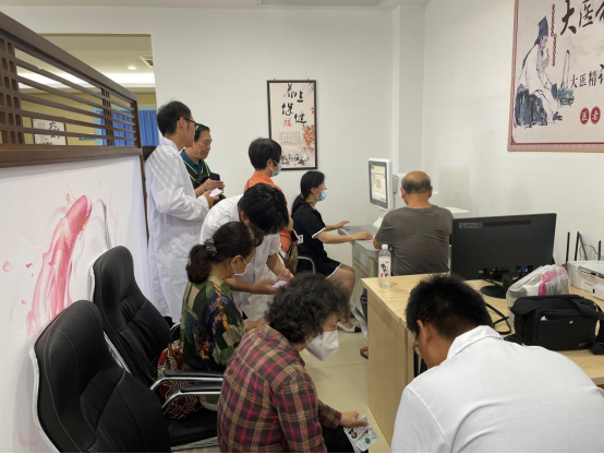 中医康复实训室通过艾灸、拔罐、刮痧、理疗仪等中医理疗养生保健疗法,为学员们解决当下身体的不适。康复专业的师生一边对症,用专业的中医手法帮助叔叔阿姨舒缓肩颈、腰部等不适,一边给他们科普中医知识、耐心解答中医疑问,学员们表示非常感谢,且不虚此行。