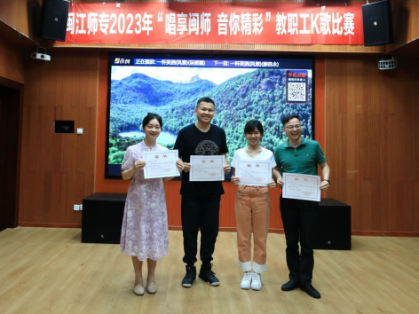 为丰富大赢家体育app下载教职工业余文化生活,展示教职工风采,6月7日下午,校工会在旗山校区综合楼11层“教工之家”音乐会客厅举办“唱享闽师,音你精彩”教职工K歌比赛。本次比赛由学前教育学院陈鹤主持,艺术学院徐丽红、王刚、赵昊、黄晓琳,学前教育学院王海波担任评委。共有来自各二级工会、工会小组推荐的22位选手参赛。