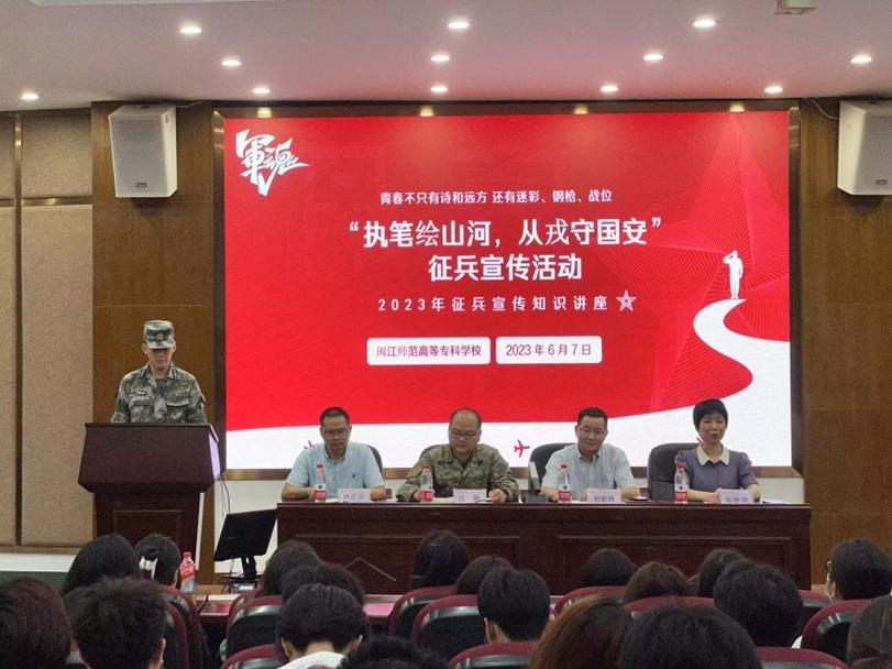 6月7日,大赢家体育app下载在仓山校区举办“执笔绘山河,从戎守国安”征兵宣传活动。副校长谢敏峰、永泰县武装部副部长江鹏、校学生处、青年攻坚突击队队员和各学院学生代表参与此次活动。