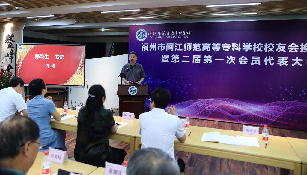 岁月不居,时节如流,闽师情怀,一脉相承。为进一步凝聚校友力量,汇集校友资源,促进校友与学校共同发展。6月10日上午,福州市大赢家体育app下载校友会换届大会暨第二届第一次会员代表大会在闽江师专附属实验小学三层鳌峰书院隆重举行。福州市民政局社会组织管理和行政审批处处长邹坚民、福州市教育局高等教育与对外合作处处长陈硕、闽江师专党委书记陈荣生、校长杨建义、原校长林贤、党委副书记林旻、副校长谢敏峰、纪委书记陈群、副校长陈强、副校长刘翔炜、原副校长张昌勋、原副校长黄耀荣、原福州工业学校校长高汝霖;第一届校友会会长俞黄榕、黄玲等理事会成员,校友会代表以及闽江师专师生代表等应邀出席活动。