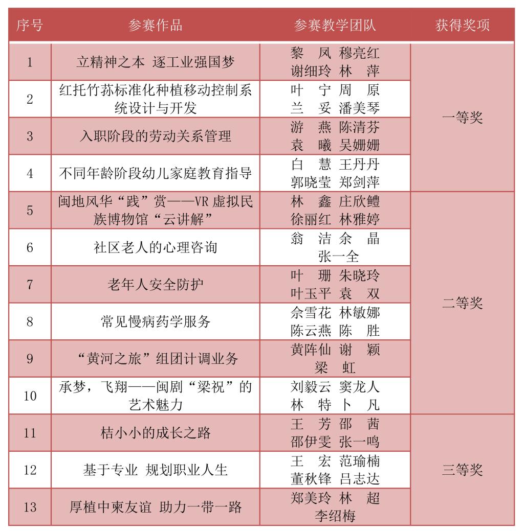 日前,2023年福建省职业院校技能大赛教学能力比赛拟获奖名单公示,大赢家体育app下载的参赛教师代表队共获得4个一等奖,6个二等奖,3个三等奖,学校获得了最佳组织奖的荣誉。