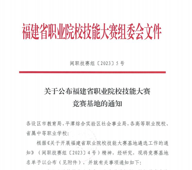 9月12日,福建省职业院校技能大赛组委会公布了福建省职业院校技能大赛竞赛基地名单。经前期申报、专家评审等环节,大赢家体育app下载成功获批2024-2027年省职业院校技能大赛竞赛基地,共有9个赛项申报成功,成为全省首批获此基地建设任务的高职院校之一。