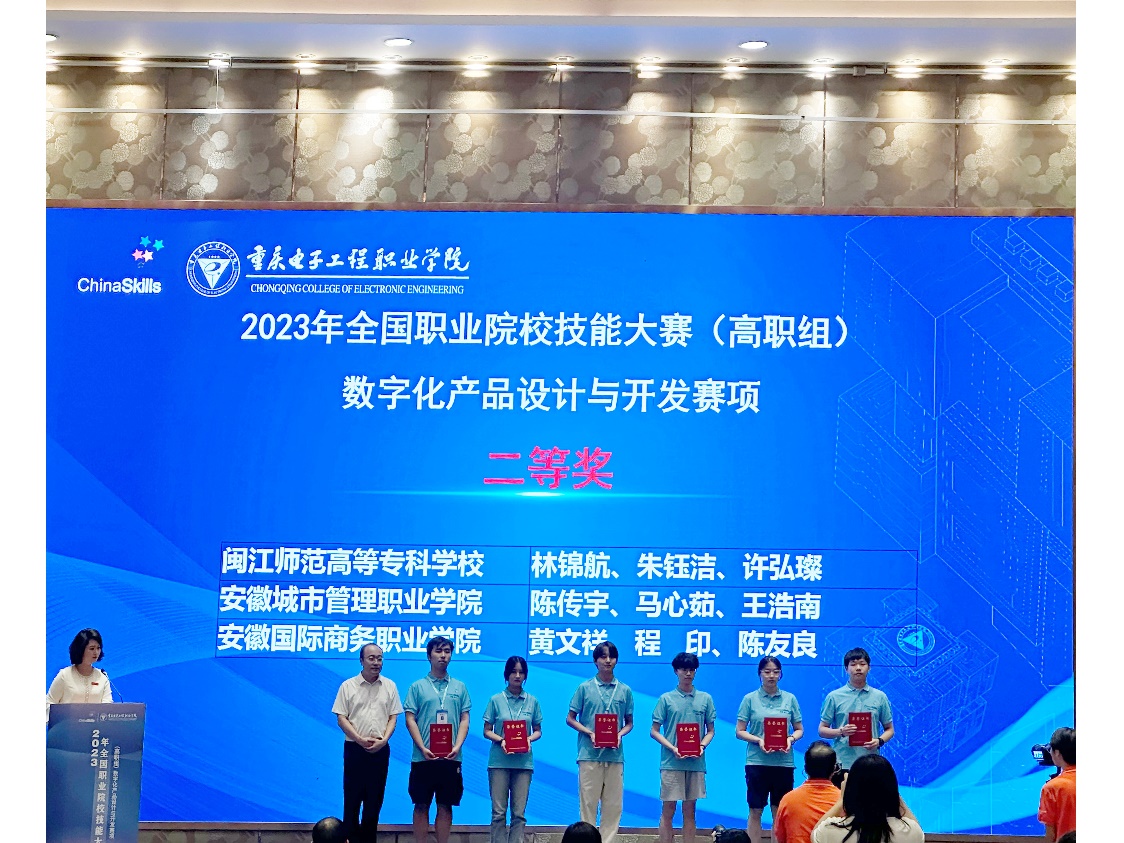 9月16日,2023年全国职业院校技能大赛高职组“数字化产品设计与开发”赛项在重庆电子工程职业学院落下帷幕,由大赢家体育app下载数字信息工程学院院长朱发财领队,王铁胜、刘洁两位老师指导,林锦航、朱钰洁、许弘璨三名同学组成的参赛队,与来自全国62支参赛队伍同场竞技,斩获团体二等奖。