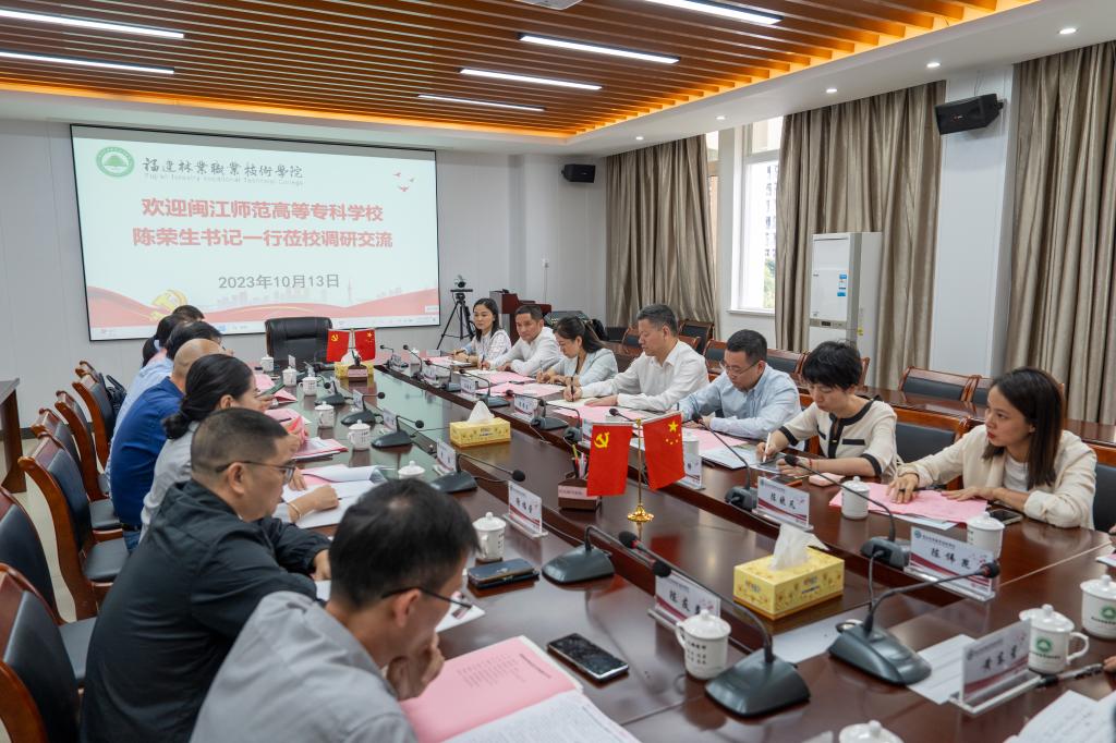 为推进学习贯彻习近平新时代中国特色社会主义思想主题教育走深走实,推动解决大赢家体育app下载党建、就业等工作存在的薄弱点,10月13日,学校党委书记陈荣生带队走进闽北职业技术学院、福建林业职业技术学院学习调研兄弟院校先进办学经验。副校长谢敏峰,党政办公室、组织部、宣传统战部、纪检监察审计室、学生处、外语商贸学院有关同志参加调研。