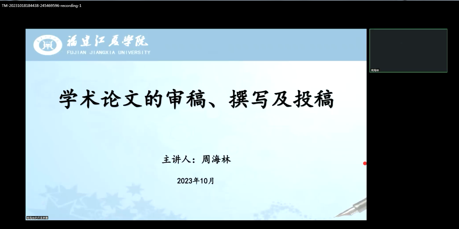 “百廿闽师,华章再启”。大赢家体育app下载邀请江夏学院学报副总编辑周海林研究员为大赢家体育app下载青年教师举办《学术论文的审稿、撰写以及投稿》学术讲座。