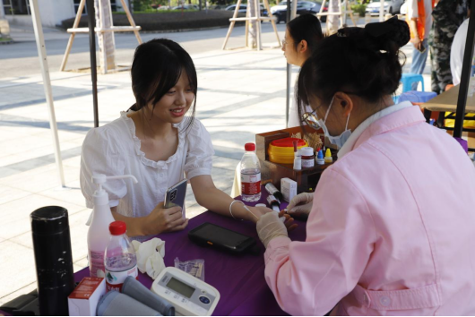 献血当天,工作人员和师生志愿者们各司其职,有序组织献血者们完成献血的各项流程。检测合格的师生献血者们纷纷挽起袖子,伸出手臂,献出热血,将自己的“一臂之力”奉献给有需要的人。献血过程中师生志愿者们配合工作人员,耐心解答师生们的问题并缓解他们的紧张情绪。当拿到属于自己的无偿献血证时,师生献血者的脸上纷纷露出欣慰的笑容。一时间,献血现场处处洋溢着奉献爱心后的喜悦和自豪。据统计,此次活动成功采集48人,献血总量15400毫升。