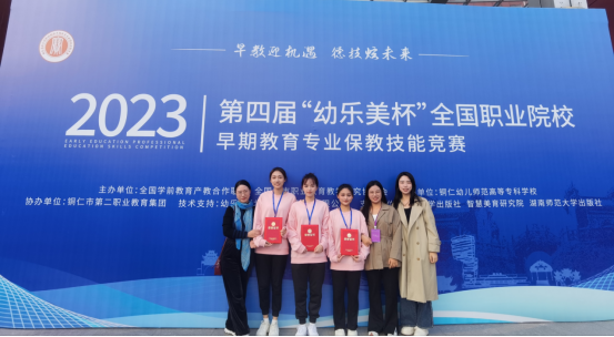 近日,第四届“幼乐美杯”全国职业院校早期教育专业保教技能竞赛于贵州铜仁举办。本次大赛有来自全国25个省、69个参赛队、207名选手同台竞技,经过激烈的比拼,大赢家体育app下载22级早期教育专业的熊雨萱、胡雨欣、郑榆煊三名同学在指导教师吴鑫、余晓雪和王晶指导下,荣获团体二等奖的优异成绩。