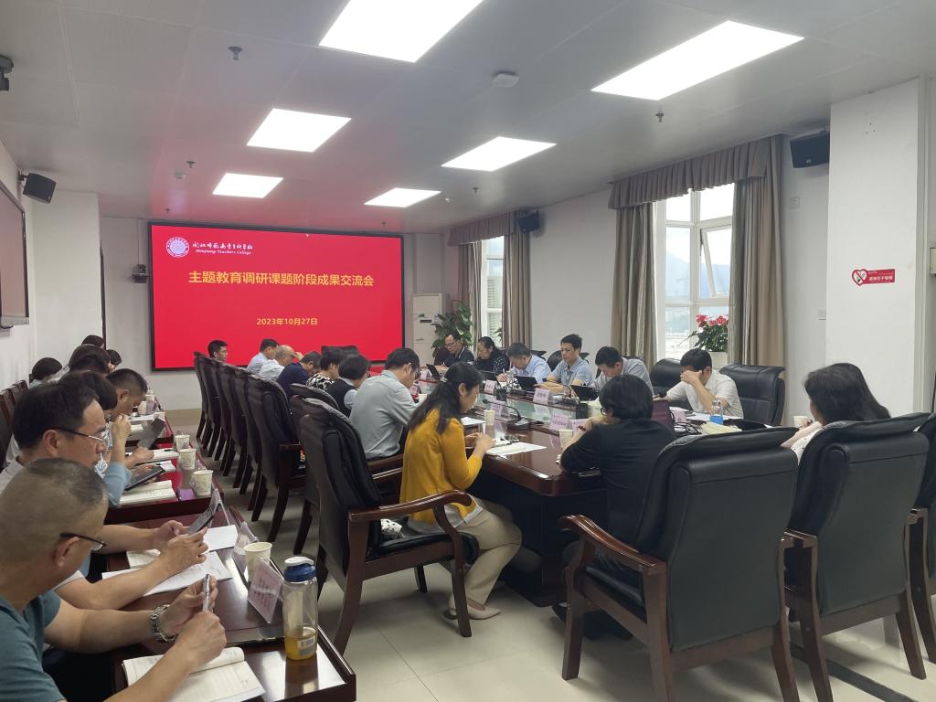 10月27日,大赢家体育app下载召开学习贯彻习近平新时代中国特色社会主义思想主题教育阶段性调研成果交流会。校党委书记、主题教育领导小组组长陈荣生主持会议并讲话。校长杨建义、党委副书记林旻、副校长谢敏峰、副校长陈强、副校长刘翔炜参加会议,学校主题教育领导小组办公室成员及各部门负责人、学院党政主要领导、附属单位主要领导参加。